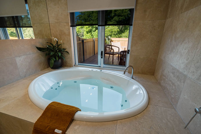 Private Luxury Travertine Tiled Bathroom & Spa Bath